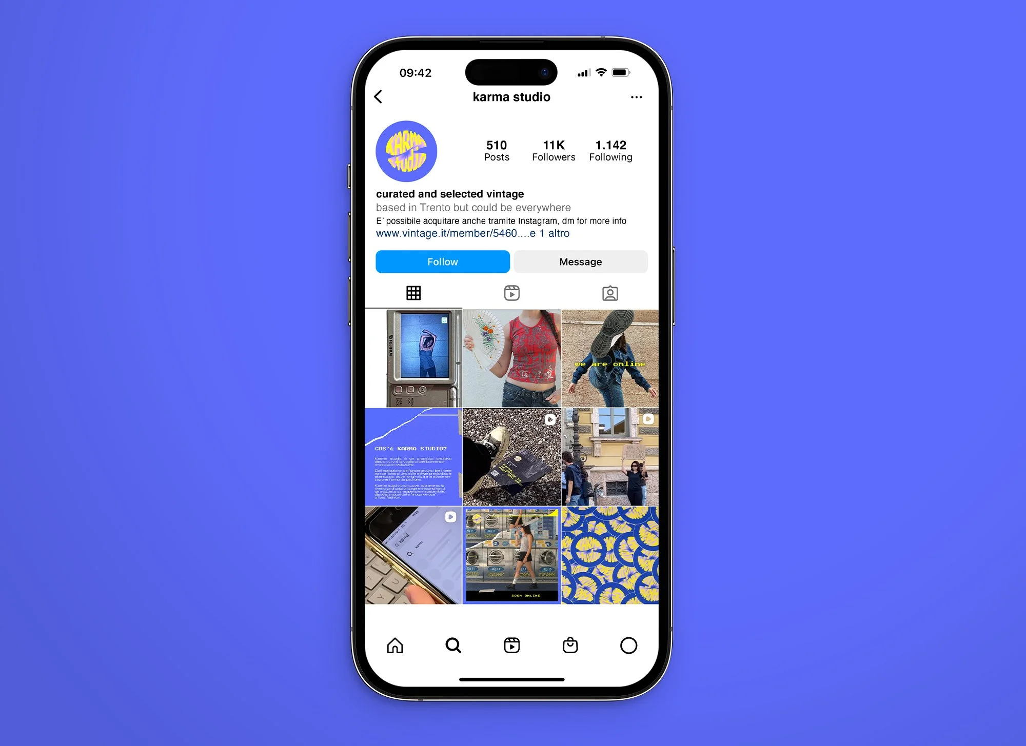Karma Studio promotes conscious and sustainable shopping through the resale of vintage and second-hand garments, distancing itself from “fast fashion.”