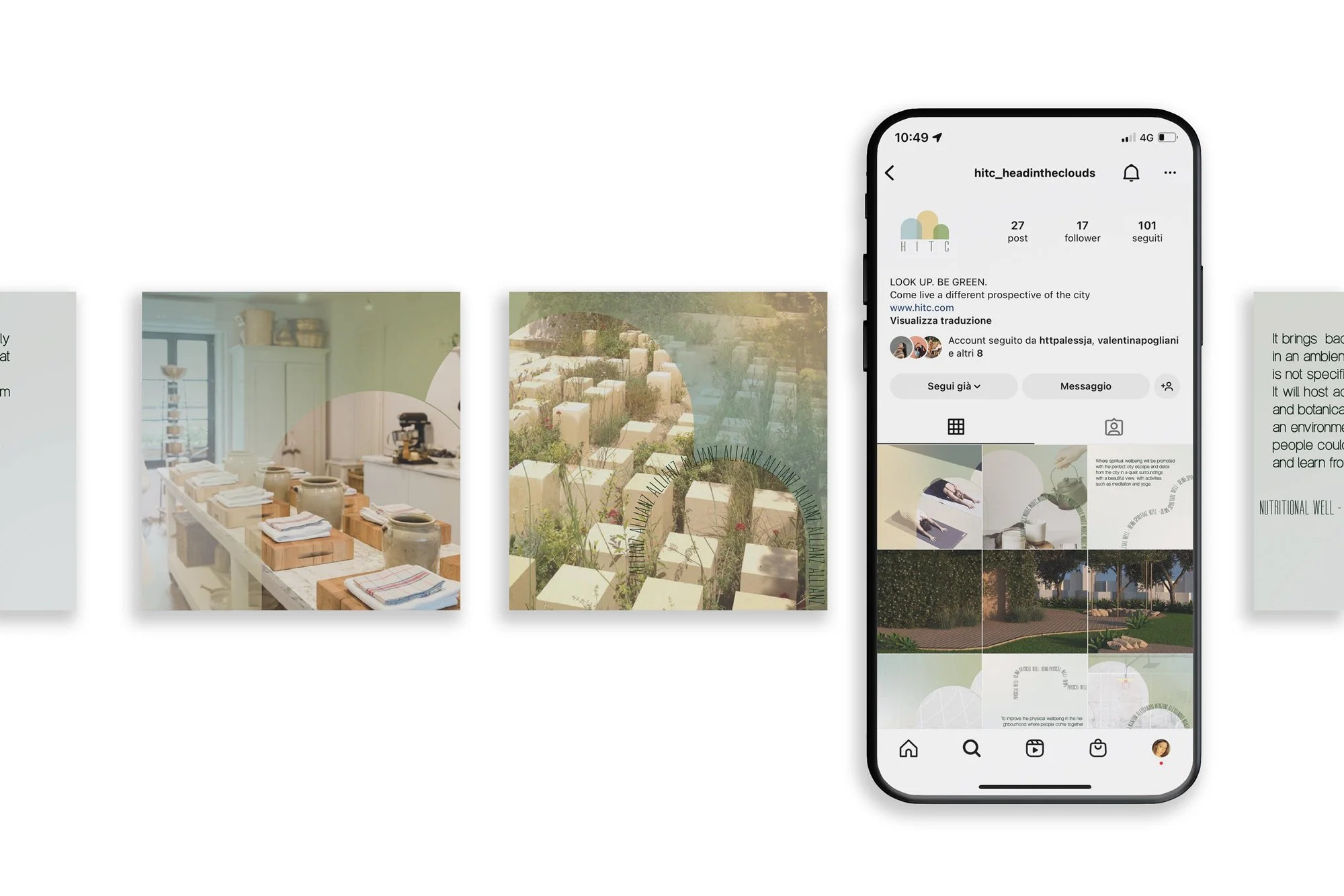 L’identità visiva di HITC traduce i suoi valori in un linguaggio fatto di forme, colori e materiali: blu, verde e giallo rappresentano le tre dimensioni del benessere, unite in un’unica visione coerente. Nel logo, tre forme che si elevano richiamano i livelli del benessere rigenerativo e diventano il segno guida di tutta la comunicazione.